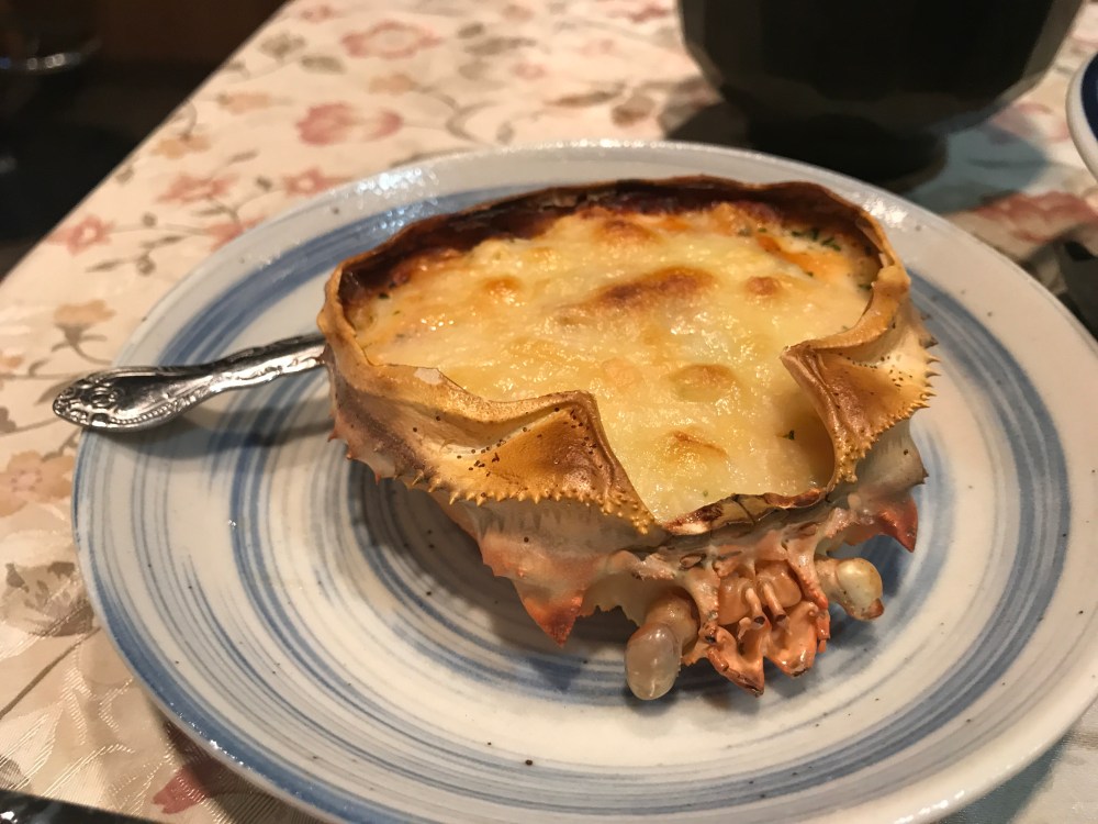 Dinner was great, a lovely time chatting with another female henro who did a great job of using simple words so I could understand. Oh, and dinner came with a crab shell stuffed with cheese. Yum!