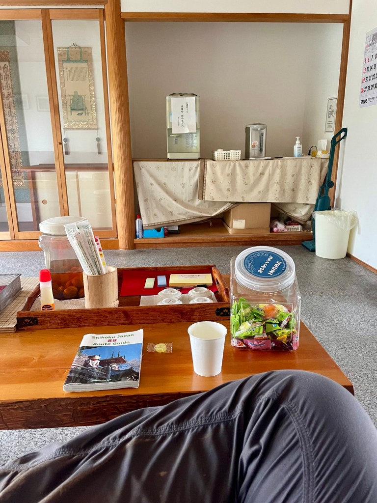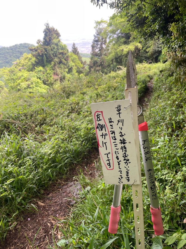 From there, back on the trail. I was starting to get tired—it was a lot of up and down—when I came across this heart-breaking rest stop. Read for yourself. I should have taken a photo of the snacks inside the plastic boxes—I picked a ramune and some Koala Yummies.