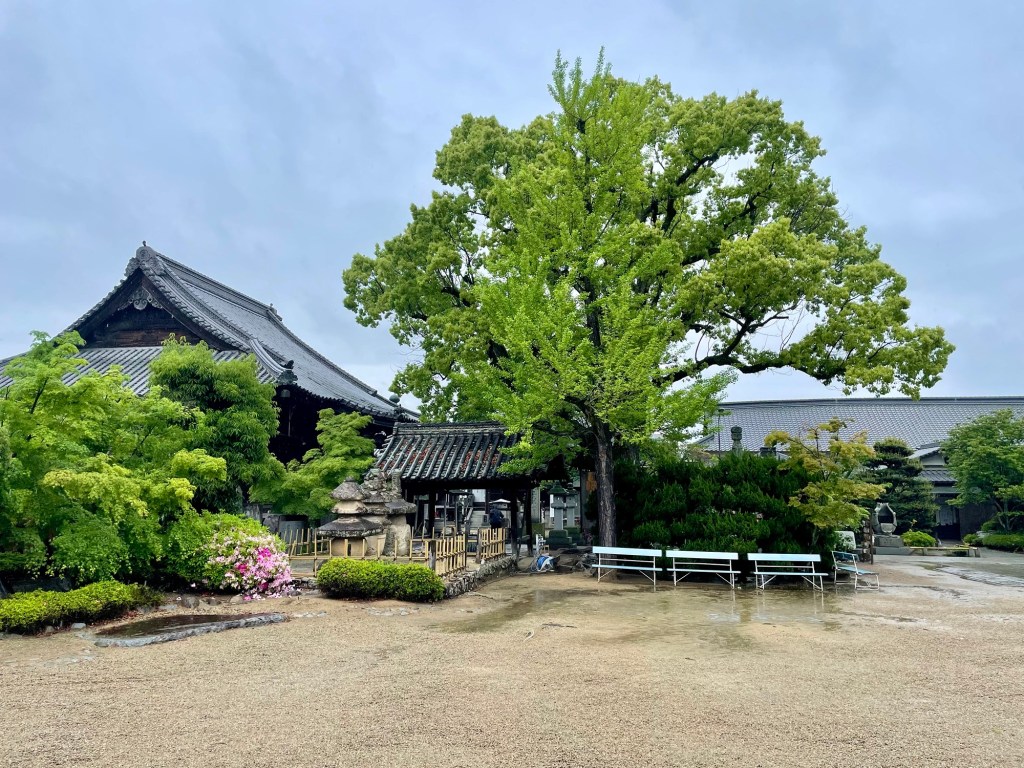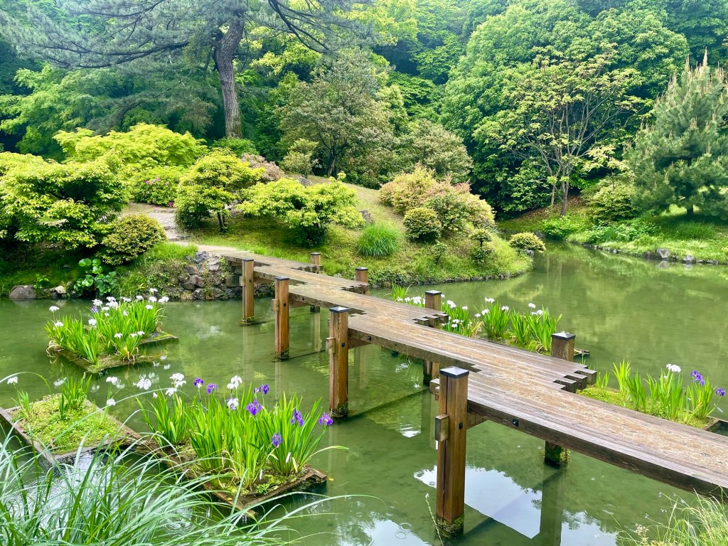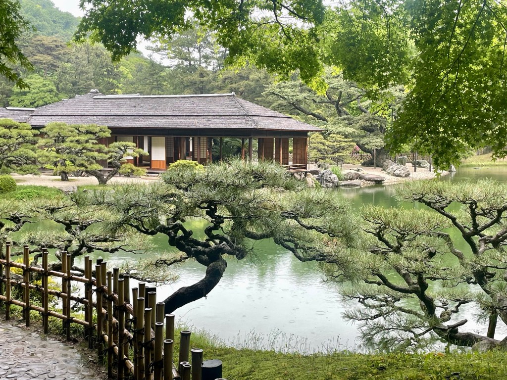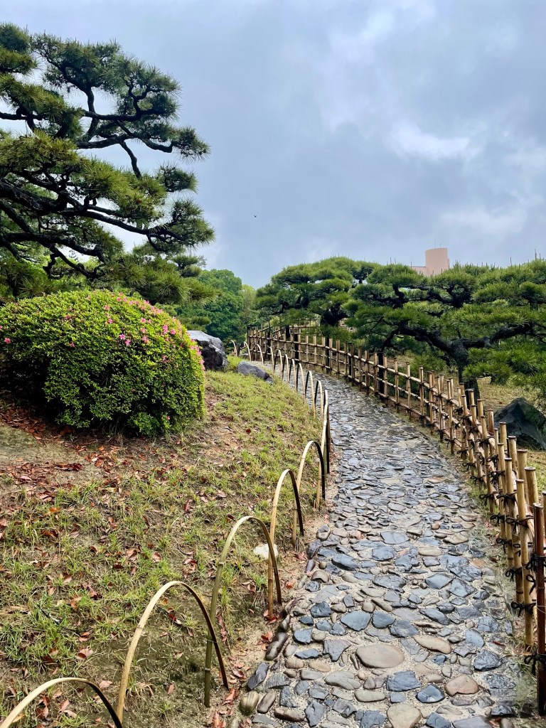 Then I set off for Ritsurin Garden. The walk there was pretty rough. Kinda suburb sprawl-y, narrow streets with cars whizzing by, and I wasn’t really on the pilgrim path. And rain, rain, rain.