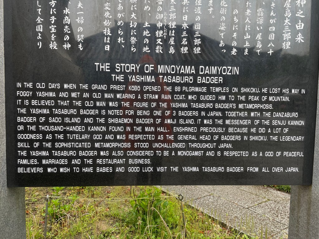 Ah yes. The Yashima Tasaburo Badger, the “god of peaceful families, marriages and the restaurant business.”