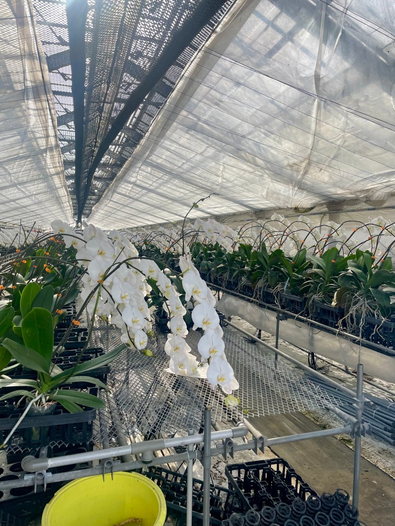 The first part was quite flat, and beautiful, and again gorgeous weather. Saw some greenhouses full of orchids (how do they get them all the bloom the same way at the same time??).