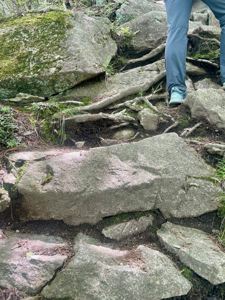 Walking on, the path was certainly getting more challenging. To this point I hadn’t crossed paths with any other pilgrims. But then another woman appeared. I was ready to let her go by, but she suggested we walk together especially since the next section was supposed to be quite difficult. I warned her that I’m slow, and so Mariko from Switzerland and I set out for the top.