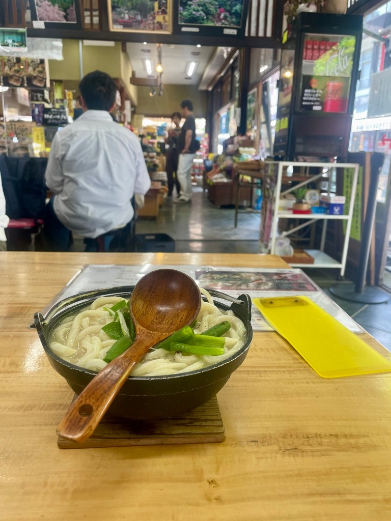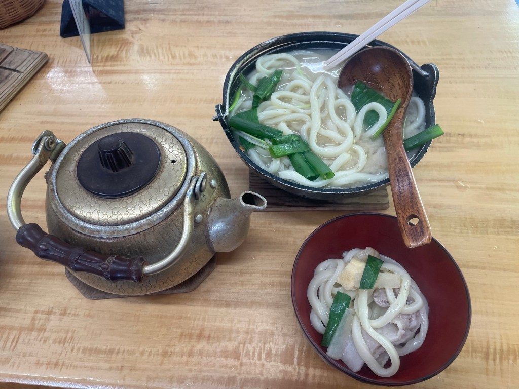 Stopped for a late lunch of udon and a celebratory beer. How do Japanese people eat such big servings of noodles?? I just climbed a (small) mountain and I could eat only about half.