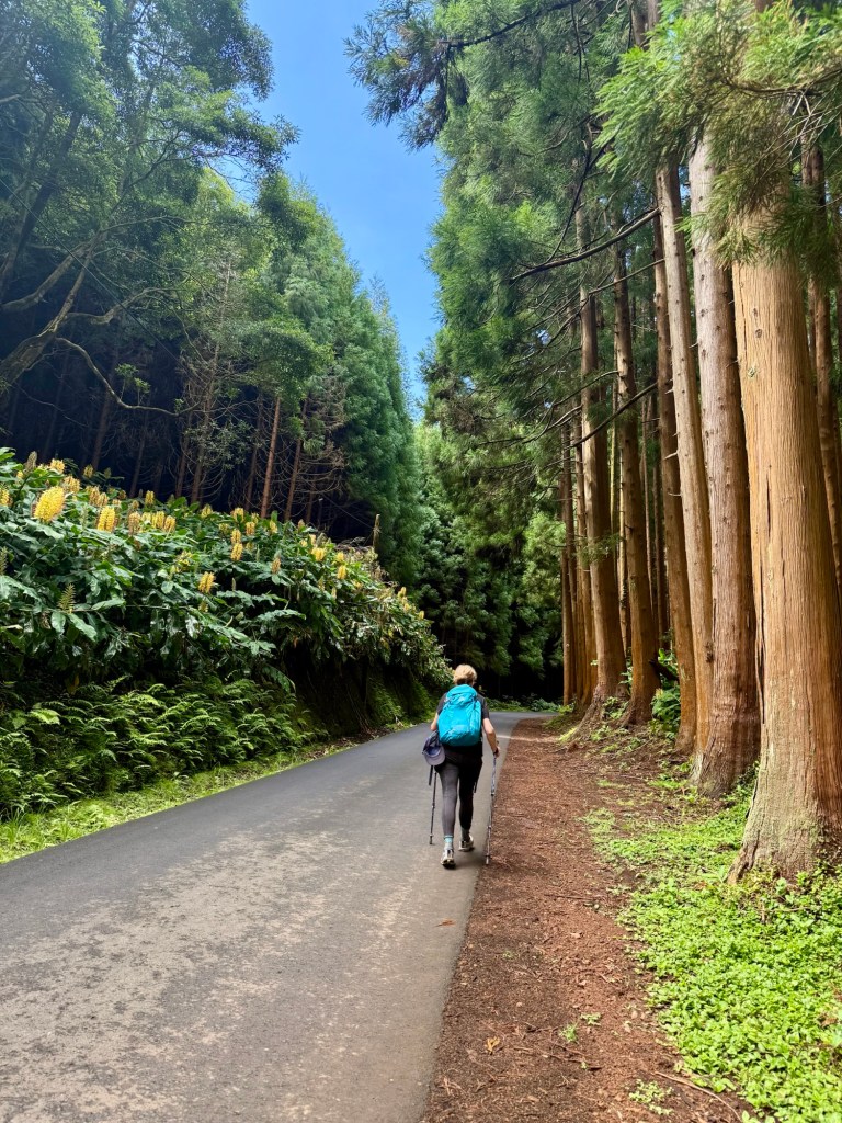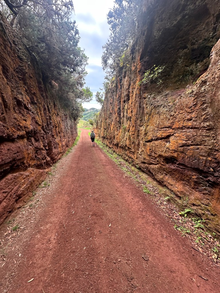 Day Four! According to the map, day four is the longest day, with the most elevation. We were concerned that it might be too much for us, so I’d arranged for a local taxi to be “on call.” The path follows both trails and (extremely lightly travelled) roads. Road access meant that a taxi could come pick us up and give us a lift to our accommodation, if it proved to be too difficult.